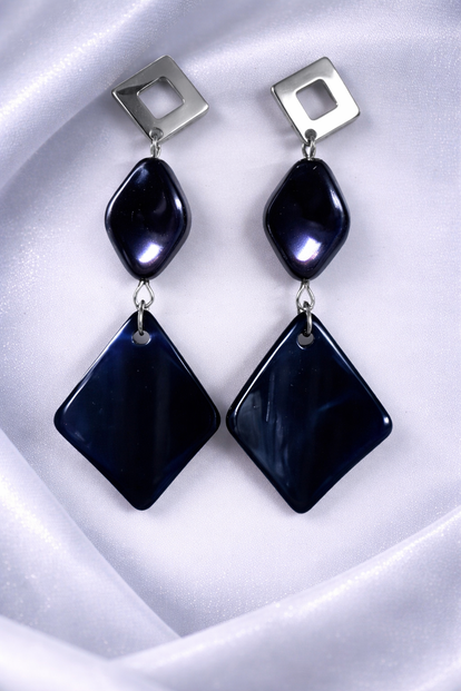 Stijlvolle donkerblauwe oorbellen met twee unieke steentjes en zilverkleurige steker