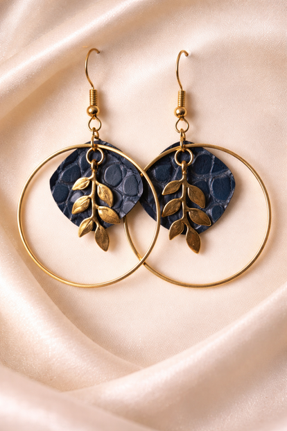 Blue Leaf Hoop Oorbellen