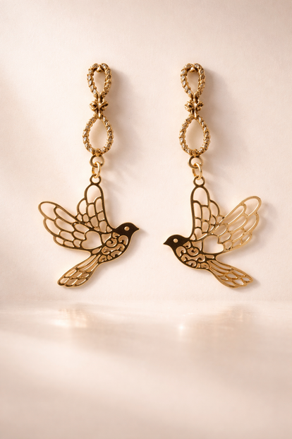 Stijlvolle hangoorbellen met sierlijke vogelvorm, symbool voor vrijheid en elegantie