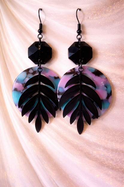 Het contrast tussen het diepe zwart en de zachte pastelkleuren geeft deze oorbellen een intrigerende, bijna nachtelijke vibe. Ze zijn licht van gewicht, comfortabel om te dragen en perfect voor iedereen die houdt van een uitgesproken, moderne stijl met een vleugje fantasie.