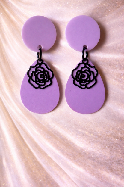 De Purple Blossom Wave oorbellen zijn een echte eyecatcher voor wie houdt van unieke vormen en diepe kleuren. De golvende paarse ring in gemarmerde resin wordt prachtig geaccentueerd door de zwarte bloem, wat zorgt voor een krachtig maar elegant contrast.