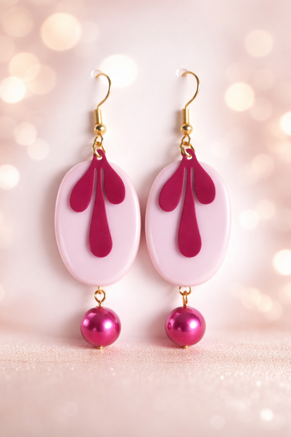 Deze speelse oorbellen combineren zachtroze ovals, een vrolijk donkerroze bloemmotief en een glanzend parelballetje tot een heerlijk kleurrijk statement dat elke outfit meteen opvrolijkt.