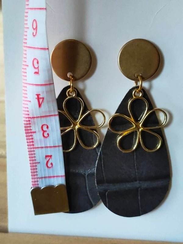 Black Stone Flower Druppel Oorbellen