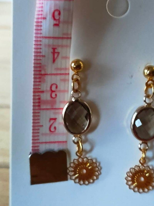 Amber Eclipse straalt pure elegantie uit. Deze goudkleurige oorbellen combineren een diep donkerbruine facetgeslepen steen met verfijnde metalen details en een sierlijke bloemvormige hanger. Het samenspel van glans, warmte en vorm zorgt voor een tijdloos en chic ontwerp.