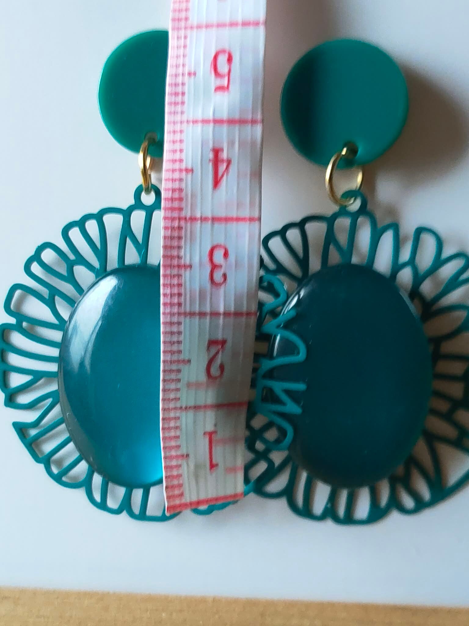 De heldere groene kleur maakt deze oorbellen opvallend zonder schreeuwerig te zijn. Ondanks het statement formaat zijn ze licht van gewicht en comfortabel om te dragen. Ideaal om een eenvoudige outfit direct een krachtige en modieuze touch te geven.