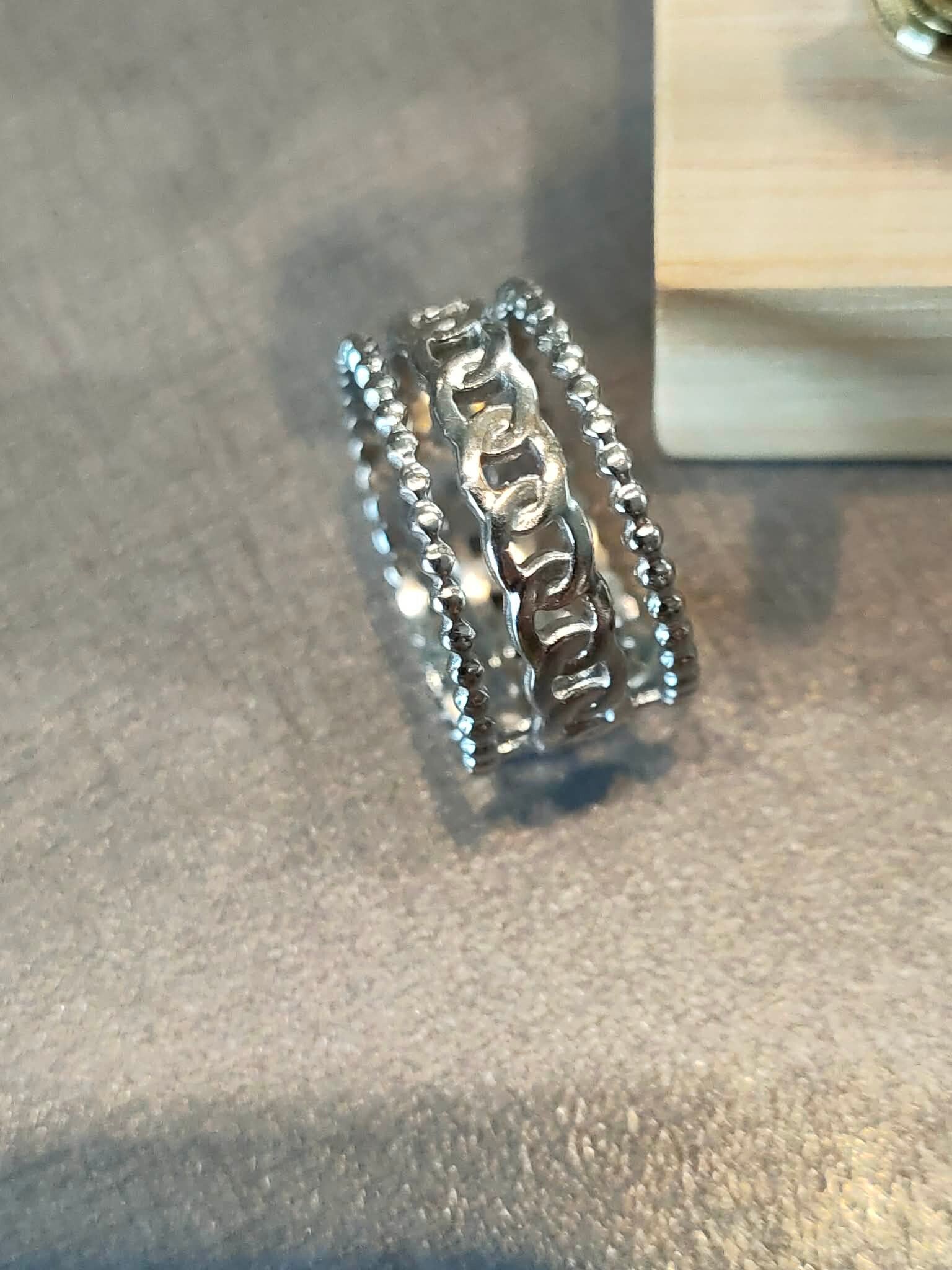 Valeria Layer RVS Ring – Silver Textured Design