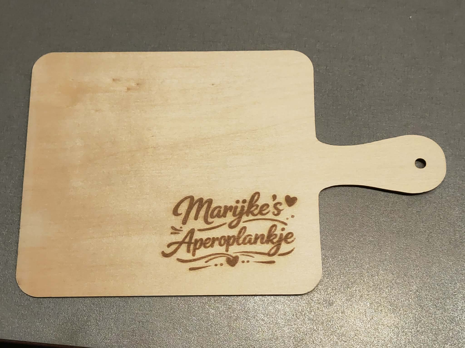 Of je nu kiest voor een naam, quote of speciale boodschap – jouw plankje wordt met zorg en precisie gegraveerd, waardoor elk stuk uniek is.