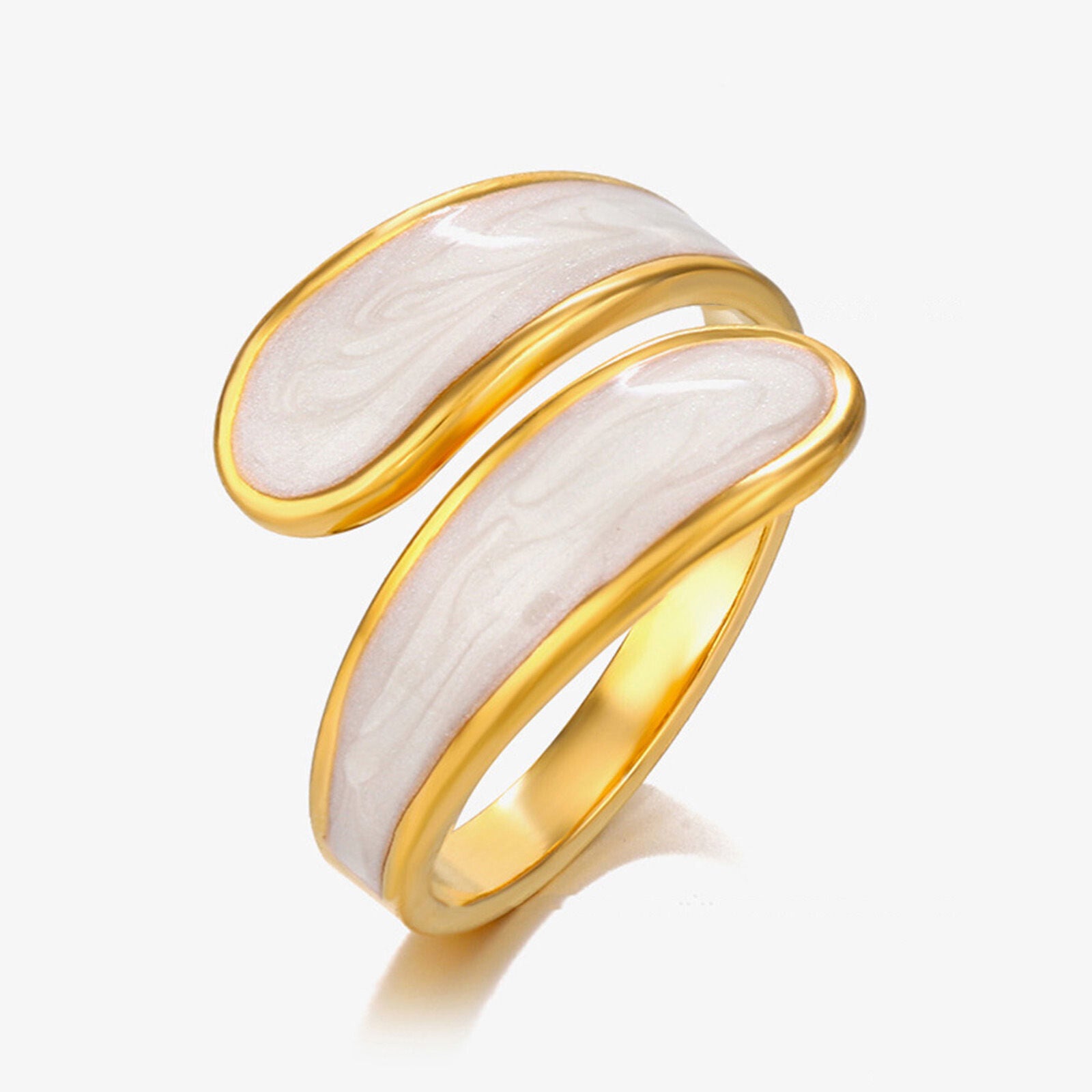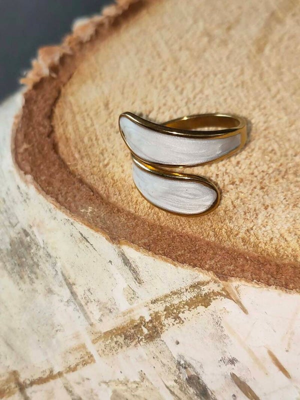 Ivory Flow Open Ring – 18K Verguld Emaille Design (Verstelbaar)