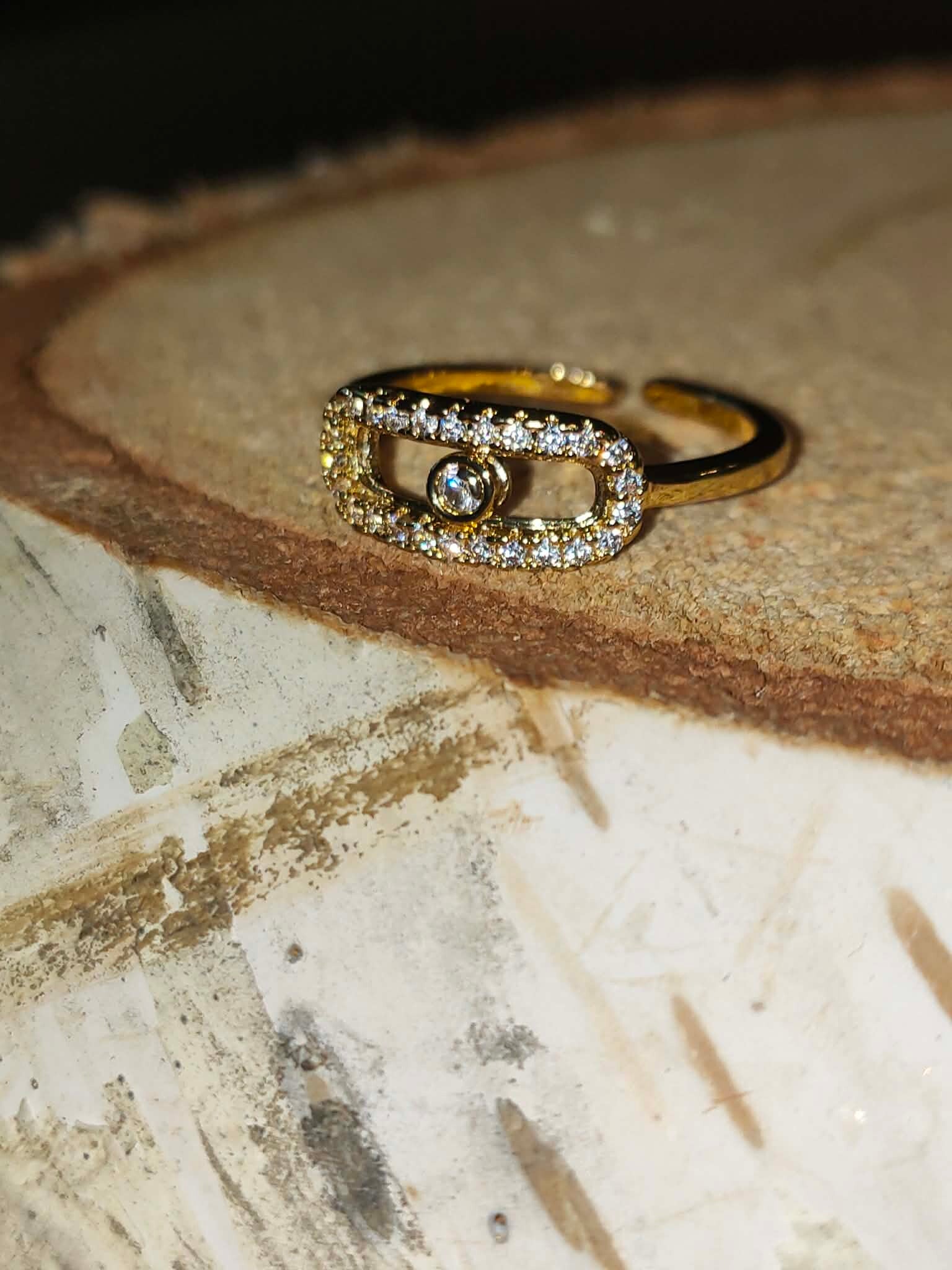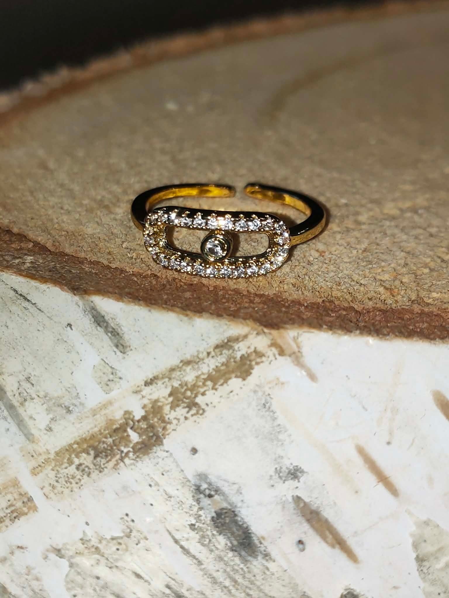 Crystal Link Ring – Goudkleurige Open Ring met Zirkonia (RVS, Verstelbaar)