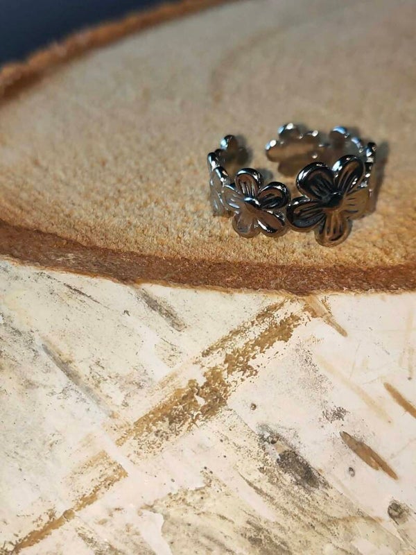 Blossom Flower Ring – Zilverkleurige Open Ring met Bloemen Design (RVS, Verstelbaar)