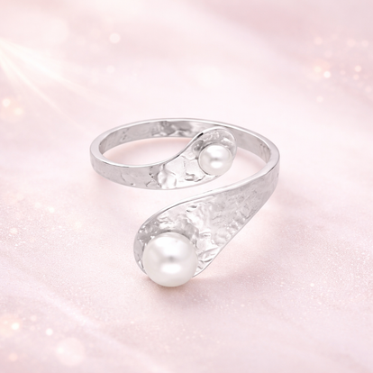 De Luna Pearl Wrap Ring is de perfecte mix van elegantie en modern design. De speelse, open vorm wikkelt zich subtiel om je vinger, terwijl de twee pareldetails zorgen voor een verfijnde en vrouwelijke uitstraling.