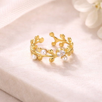 Elegant, verfijnd en betoverend – de Luna Pearl Vine Ring is geïnspireerd op sierlijke takjes en natuurlijke vormen. De combinatie van subtiele parels en sprankelende cubic zirkonia geeft deze ring een luxueuze, vrouwelijke uitstraling die perfect is voor elke gelegenheid.